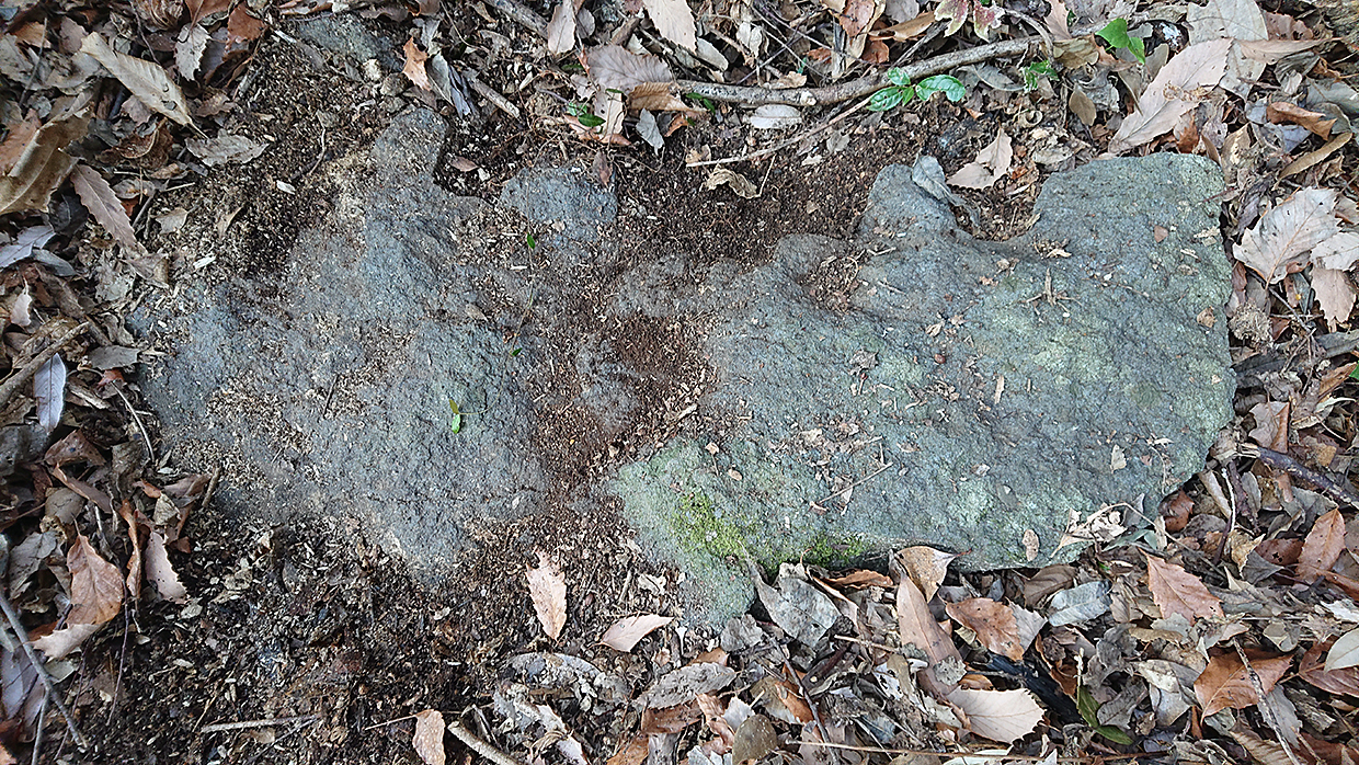 土砂に埋もれて思わず見過ごしてしまうそうな石材が残っています。 「登り立石丁場」に残る石材の矢穴幅は、10cmを越える大きな矢穴跡から7〜8cmの矢穴跡まで揃っています。 採石期間は長く慶長時代から江戸城修築終了まで続いたと思われます。
