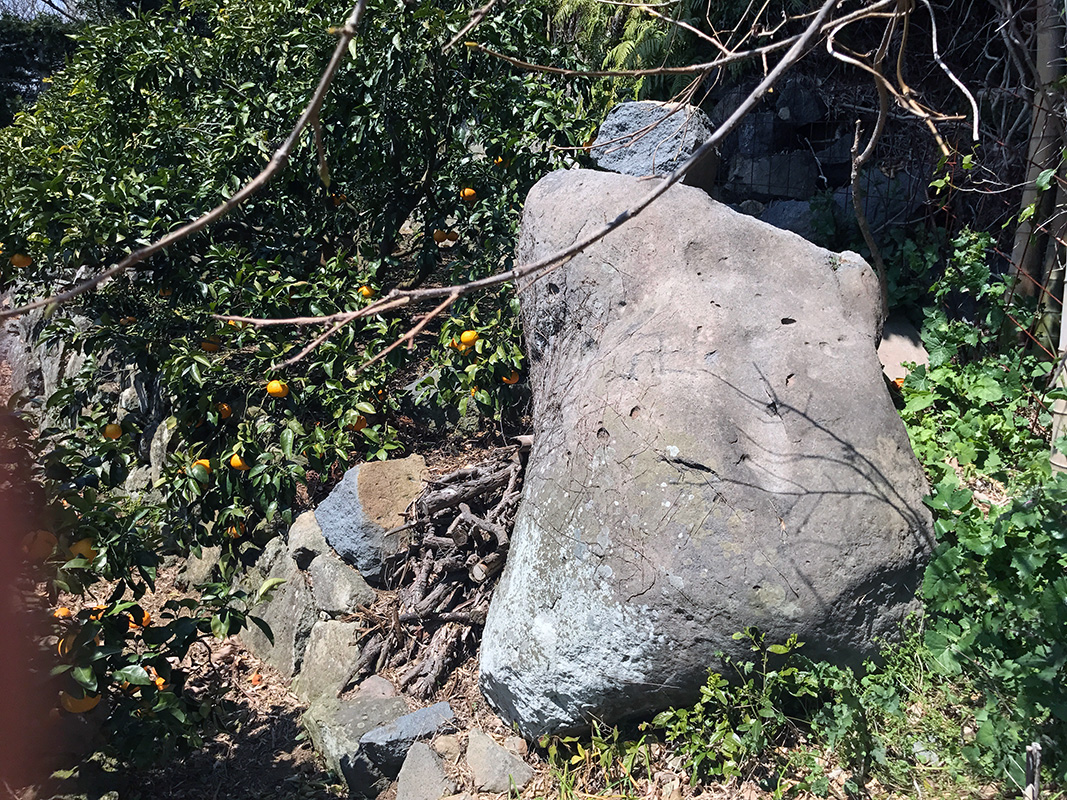 矢穴、矢割り跡はなく、大型刻印であることから標識石ではないかと思われます。