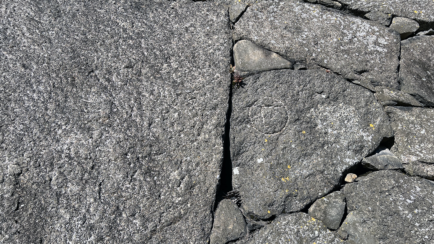 重要文化財「表二之門」を抜けた枡形内に組み込まれた鏡石横の刻印です。